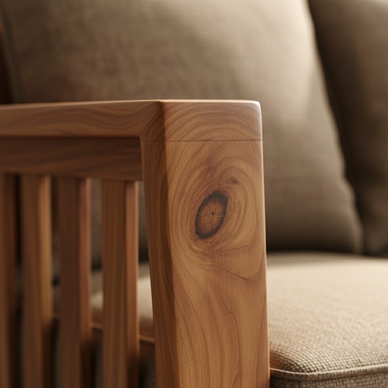 We use solid pine for inside frames, and teak for exposed areas—never plywood or particle board.